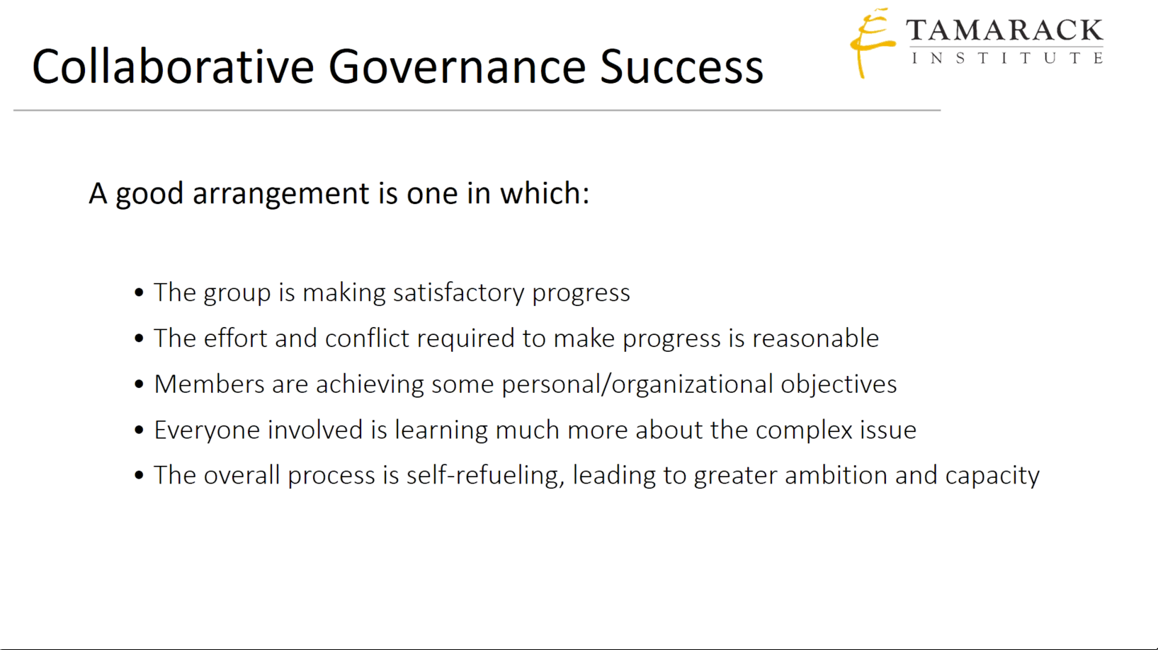 What success have you had working on a collaborative governance project? Any additional markers that make a difference?